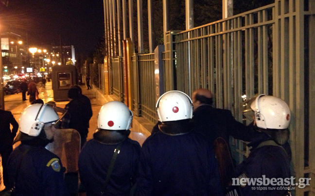 Συγκέντρωση διαμαρτυρίας πραγματοποίησαν σε μικρή απόσταση από το Μέγαρο Μουσικής μέλη του Ενιαίου Παλλαϊκού Μετώπου (ΕΠΑΜ) και του κινήματος «Δεν Πληρώνω», καλώντας τους πολίτες να δείξουν την αντιπάθειά τους στους πολιτικούς και τους επισήμους που είχαν συγκεντρωθεί στο Μέγαρο Μουσικής για να τιμήσουν τον Κωνσταντίνο Καραμανλή.