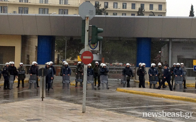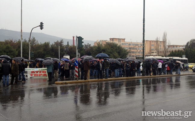 Εξαιτίας της κινητοποίησης είναι κλειστή η λεωφόρος Μεσογείων και στα δύο ρεύματα, στο ύψος του υπουργείου.