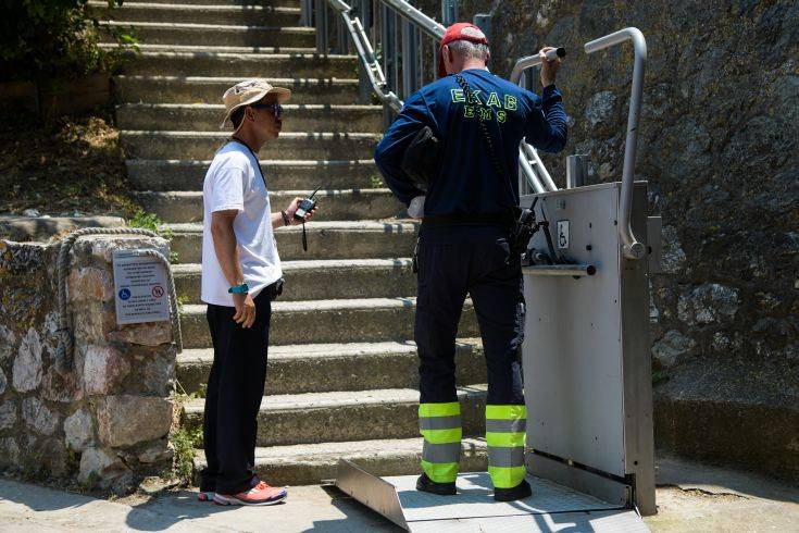 Στα χέρια σήκωσαν μαθητή που κινείται με αναπηρικό αμαξίδιο ο πατέρας του και άλλοι γονείς, κατά την επίσκεψή τους στην Ακρόπολη, καθώς το αναβατόριο, με το οποίο θα ανέβαινε με το αμαξίδιό του, ήταν εκτός λειτουργίας.