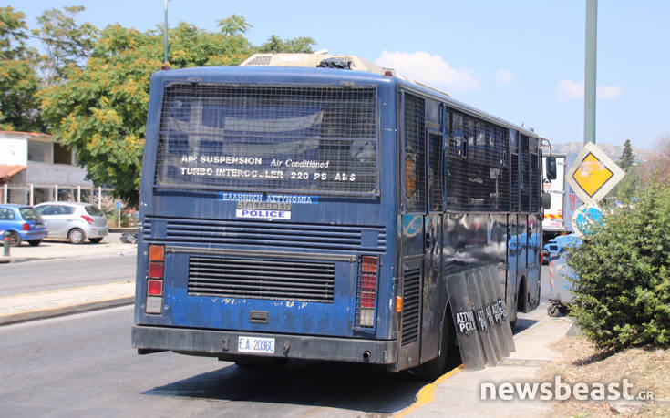 Ισχυρές είναι και οι αστυνομικές δυνάμεις, με κλούβα των ΜΑΤ έξω από το τζαμί, περιπολικά και τζιπ της ΟΠΚΕ.