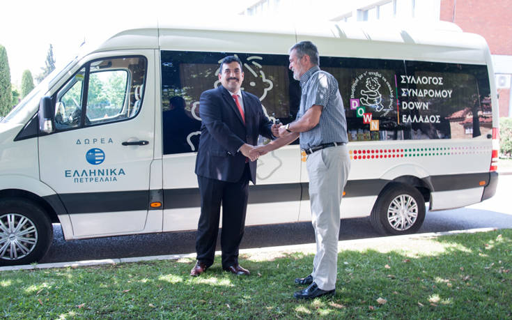 Ένα σύγχρονο λεωφορείο 17 θέσεων, το οποίο θα εξυπηρετεί τις καθημερινές ανάγκες ασφαλούς μετακίνησης των παιδιών του «Συλλόγου Συνδρόμου Down Ελλάδος», παρέδωσε ο Όμιλος ΕΛΛΗΝΙΚΑ ΠΕΤΡΕΛΑΙΑ κατά τη διάρκεια εκδήλωσης που πραγματοποιήθηκε την περασμένη Τετάρτη, 28 Μαΐου 2019, στις Βιομηχανικές Εγκαταστάσεις Θεσσαλονίκης (ΒΕΘ).