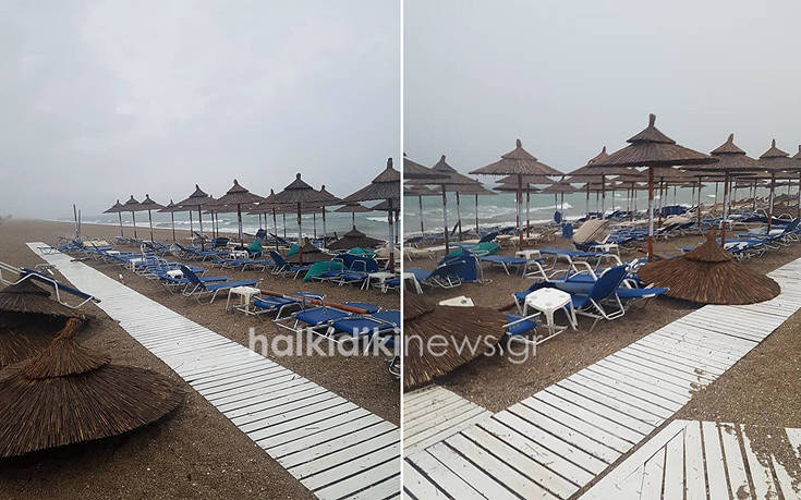 Στις Καλύβες οι ισχυροί άνεμοι σήκωσαν στην κυριολεξία τραπέζια, καθίσματα, ομπρέλες μέχρι και ψυγεία. Όπως αναφέρουν στο halkidikinews.gr όσοι βρέθηκαν εκεί, ήταν τόσο δυνατοί οι άνεμοι που παρέσυραν ό,τι έβρισκαν στο πέρασμά τους και οι άνθρωποι έτρεχαν να προφυλαχθούν.