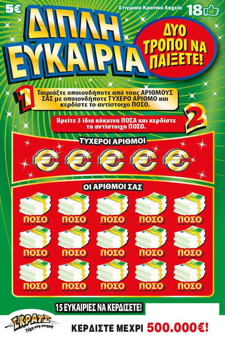 Δύο διαφορετικούς τρόπους να παίξει και να κερδίσει κάποιος μέχρι και 500.000 ευρώ προσφέρει ένα νέο παιχνίδι του ΣΚΡΑΤΣ που κυκλοφόρησε πριν από λίγες ημέρες.