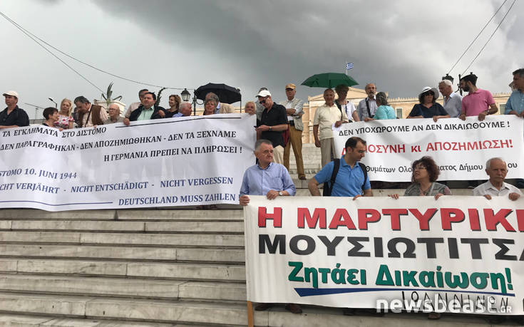 Κινητοποίηση για τις γερμανικές αποζημιώσεις πραγματοποιήθηκε στην πλατεία Συντάγματος το απόγευμα της Τρίτης.