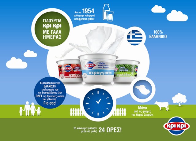 Η Kρι Kρι παρουσιάζει το γιαούρτι με γάλα ημέρας, δηλαδή γάλα που ταξιδεύει ελάχιστα, υφίσταται ελάχιστη επεξεργασία και γίνεται γιαούρτι σε 24 ώρες!
