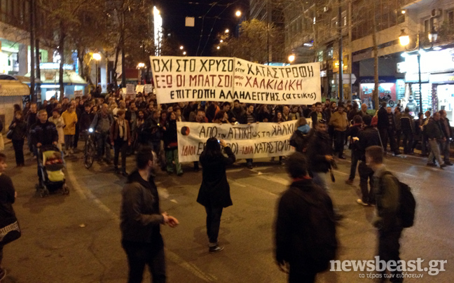 Σε εξέλιξη βρίσκεται αυτή την ώρα η συγκέντρωση και πορεία της Επιτροπής Αλληλεγγύης στη Χαλκιδική, η οποία είχε προγραμματιστεί για τις 18.00 στην οδό Πανεπιστημίου.