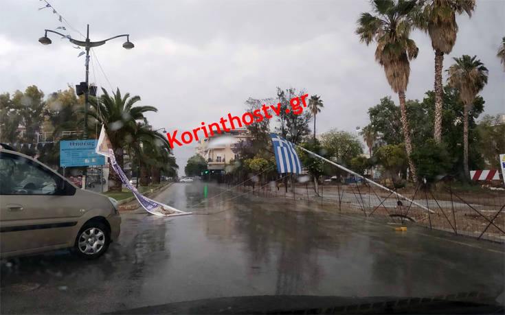 Έντονα καιρικά φαινόμενα σημειώθηκαν στην Κόρινθο με αποτέλεσμα μεταξύ άλλων προβλήματα στην κυκλοφορία των οχημάτων αλλά και στην ηλεκτροδότηση.