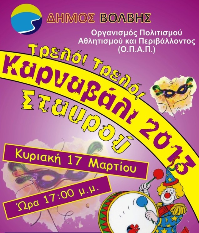 Με χιλιάδες καρναβαλιστές και επισκέπτες γιορτάζει ο δήμος Βόλβης την κορύφωση των αποκριών. Το Καρναβάλι του Σταυρού διοργανώνεται την Κυριακή 17 Μαρτίου, στις 17.00.