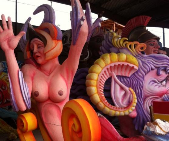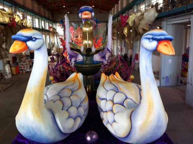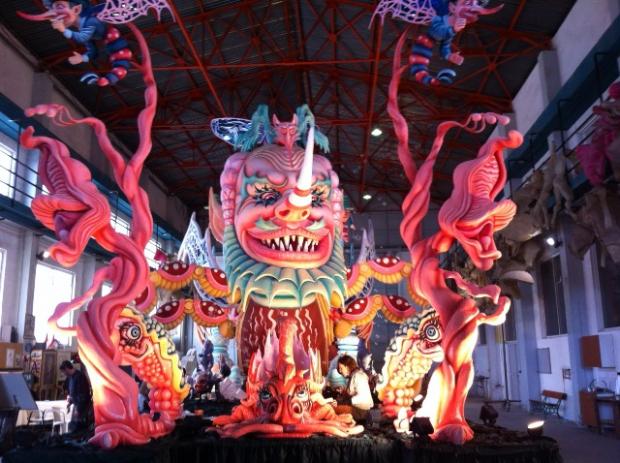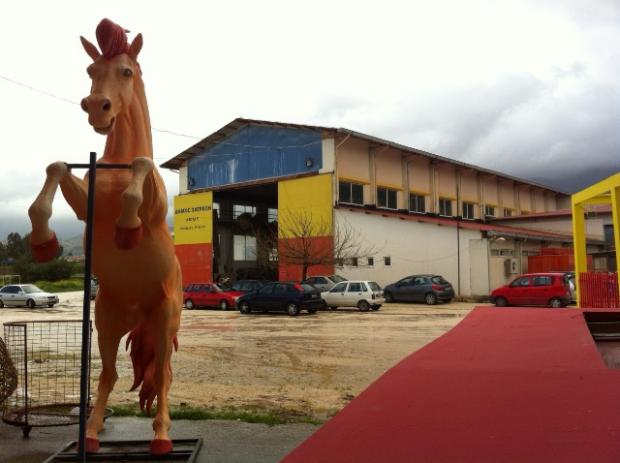 Τα άρματα δέχονται τις τελευταίες πινελιές στο καρναβαλικό συνεργείο στο Πετρωτό, ενώ η σημερινή τους παρέλαση στους κεντρικούς δρόμους της πόλης αναβλήθηκε λόγω κακοκαιρίας.