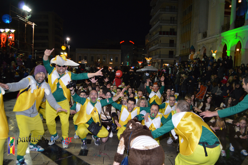 Χθες το βράδυ πάντως πραγματοποιήθηκε με απόλυτη επιτυχία η νυχτερινή ποδαράτη με πρωταγωνιστές τους χιλιάδες καρναβαλιστές – μέλη πληρωμάτων που κατέκλυσαν τους κεντρικούς δρόμους της Αχαικής πρωτεύουσας, στέλνοντας και φέτος μύνημα κεφιού – δημιουργίας – φαντασίας και ευρηματικότητας.