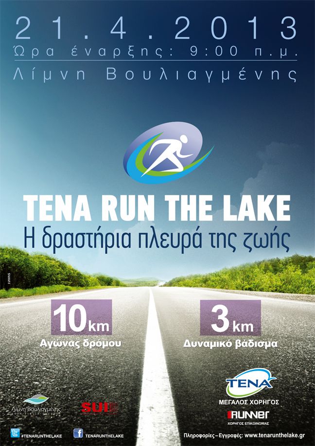 Το TENA RUN THE LAKE θα πραγματοποιηθεί την Κυριακή 21 Απριλίου στις εγκαταστάσεις της Λίμνης Βουλιαγμένης και στην περιοχή περιμετρικά αυτής και θα περιλαμβάνει αγώνα δρόμου 10 χλμ για όσους θέλουν να δοκιμάσουν την αντοχή τους, δυναμικό βάδισμα 3.000 μέτρων σε μια μοναδική διαδρομή στη φύση για όσους αναζητούν διεξόδους χαλάρωσης, αλλά και διαδραστικά παιχνίδια για τους μικρούς φίλους και συνοδούς των συμμετεχόντων.