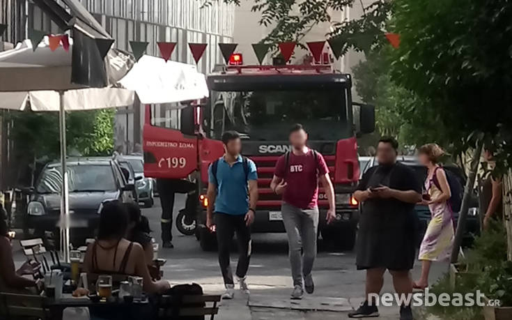 Συγκεκριμένα αυτή τη στιγμή η επιχείρηση για την κατάσβεση της φωτιάς είναι μεγάλη καθώς από κάτω βρίσκονται ουζερί και καφετέριες γεμάτα με κόσμο.
