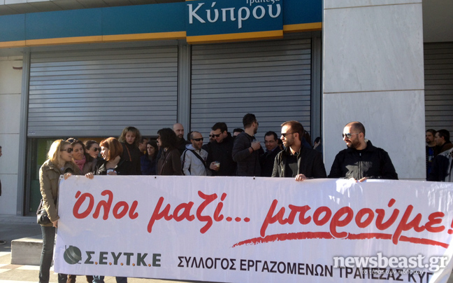 Οι εργαζόμενοι έχουν συγκεντρωθεί αυτή την ώρα στα κεντρικά γραφεία της Τράπεζας Κύπρου στη λεωφόρο Αλεξάνδρας και στις 10:30 θα έχουν συνάντηση με το στέλεχος της Δημοκρατικής Αριστεράς, Δημήτρη Χατζησωκράτη.
