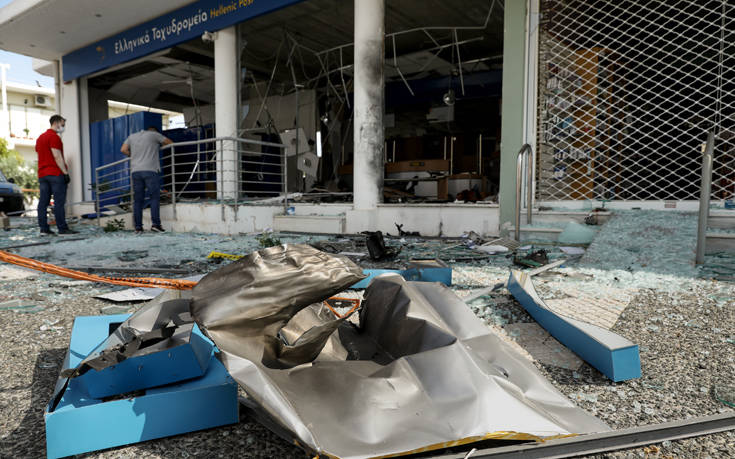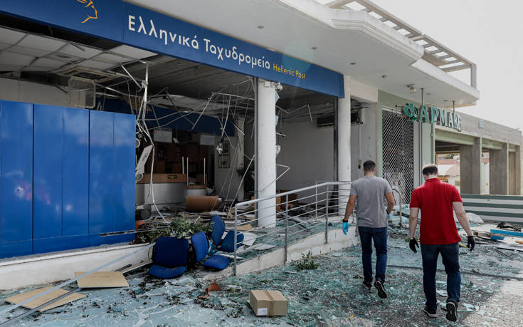 Πολύ μεγάλες είναι οι ζημιές που προκλήθηκαν στα ΕΛΤΑ στην Κερατέα, μετά την επίθεση των βομβιστών των ΑΤΜ που ανατίναξαν μηχάνημα τοποθετημένο στην πρόσοψη του καταστήματος.
