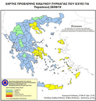 Καλύτερη είναι σήμερα η εικόνα στη χώρα σε ό, τι αφορά τον κίνδυνο πυρκαγιάς, καθώς ο κίνδυνος εκδήλωσης είναι υψηλός αλλά όχι πολύ υψηλός, όπως ήταν τις προηγούμενες ημέρες.