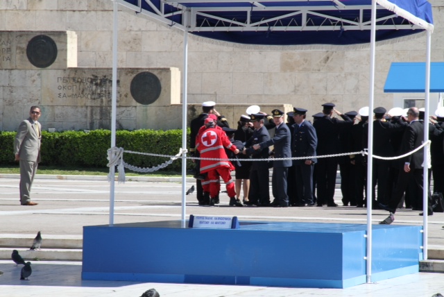 Έχασε πριν από λίγο τις αισθήσεις του και κατέρρευσε στη διάρκεια της κατάθεσης στεφάνων στο μνημείο του Αγνώστου Στρατιώτη, αξιωματικός του στρατού.