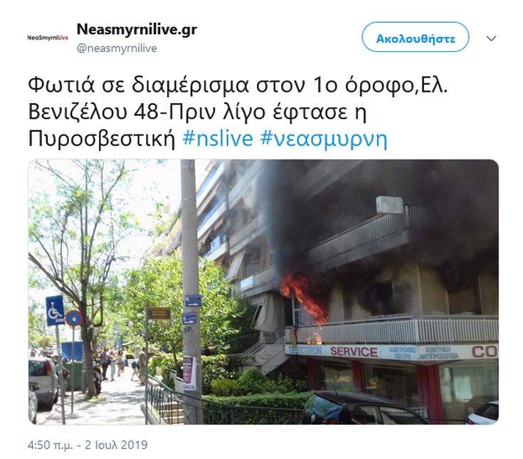 Φωτιά έχει ξεσπάσει σε διαμέρισμα πολυκατοικίας στη λεωφόρο Ελευθερίου Βενιζέλου στη Νέα Σμύρνη.