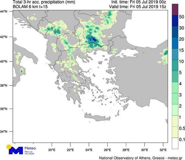 Το Σαββάτο 06/07 τοπικά φαινόμενα αναμένονται κυρίως στα δυτικά ηπειρωτικά και την Πελοπόννησο, ενώ την Κυριακή 07/07 τα φαινόμενα θα είναι λίγα και τοπικά, κατά κύριο λόγο στην Πελοπόννησο. Στον χάρτη που ακολουθεί φαίνεται η κατανομή του υετού που αναμένεται το απόγευμα της Παρασκευής 05/07