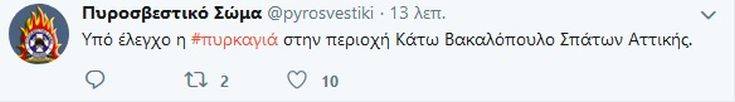 Υπό έλεγχο τέθηκε η φωτιά που ξέσπασε νωρίτερα σε υπαίθριο χώρο στον οικισμό «Κάτω Βακαλόπουλο» στα Σπάτα, όπως ανέφερε σε tweet της η Πυροσβεστική.