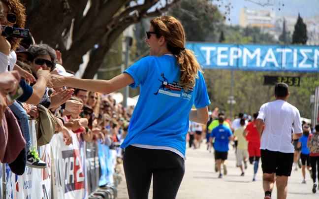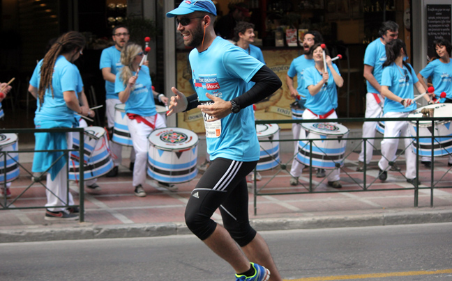 Η οδός Σταδίου πλημμύρισε από τους δυνατούς ήχους των BATALA, που ντυμένοι στα χρώματα της WIND, ξεσήκωναν με τα τύμπανά τους και το δυναμικό χορό τους σε ρυθμούς samba & regae, τους δρομείς στο πέρασμά τους