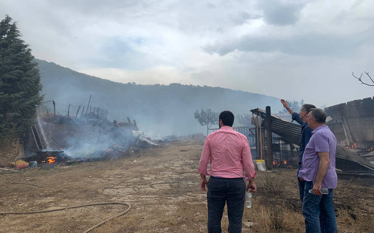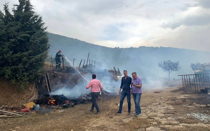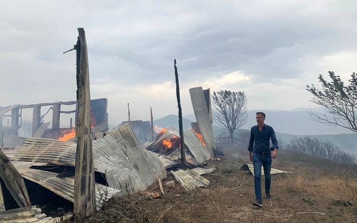 Στη Δίρβη Φθιώτιδας βρίσκεται ο Κώστας Μπακογιάννης, όπου νωρίτερα την Τετάρτη ξέσπασε φωτιά, η οποία έφτασε στο χωριό με τη βοήθεια του δυνατού αέρα.