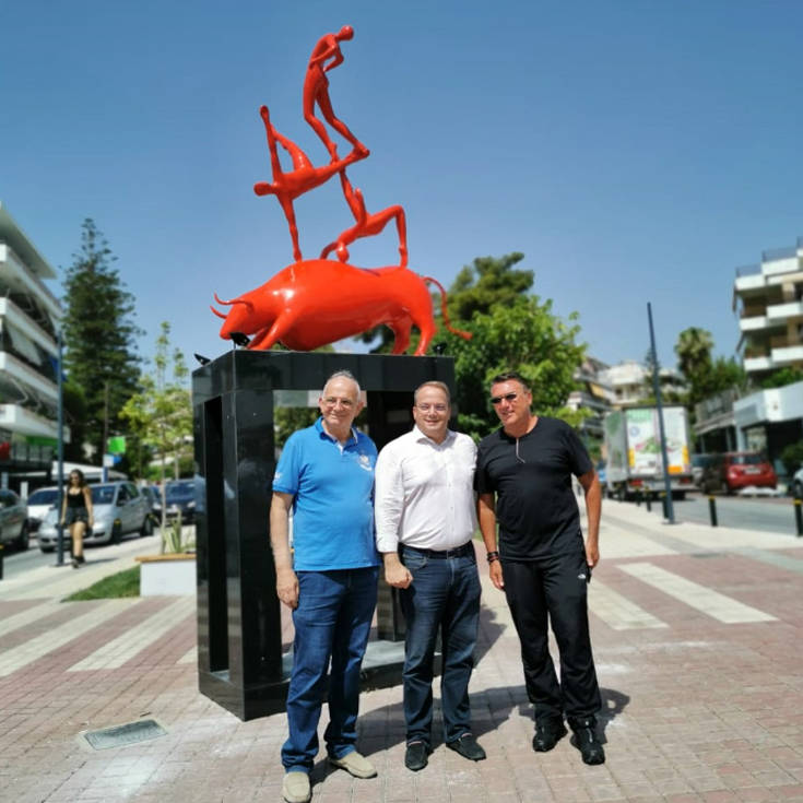 Την Τετάρτη 10 Ιουλίου έγινε η τοποθέτηση του νέου γλυπτού «TAUROKATHAPTION» στην πρόσφατα αναμορφωμένη κεντρική πλατεία της Βάρκιζας, με την παρουσία του δημάρχου Γρηγόρη Κωνσταντέλλου, του αντιδημάρχου Νίκου Βάση και υπό την εποπτεία του δημιουργού του έργου, γλύπτη Κωστή Γεωργίου.