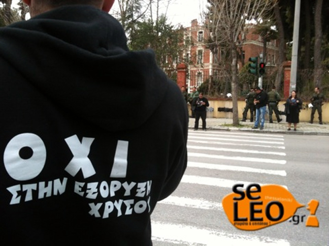Στην περιοχή είναι έντονη η αστυνομική παρουσία εμποδίζοντας τον κόσμο να πλησιάσει στην αίθουσα του περιφερειακού συμβουλίου, εκεί όπου προγραμματίστηκε συνεδρίαση του οργάνου με μοναδικό αντικείμενο την ενημέρωση για τη μεταλλευτική δραστηριότητα. Κατά τη συνεδρίαση δεν αναμένεται να ληφθεί απόφαση καθώς έχει ενημερωτικό χαρακτήρα.