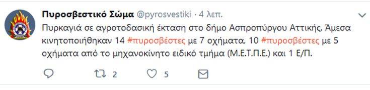 Πυρκαγιά ξέσπασε το μεσημέρι της Παρασκευής σε αγροτοδασική έκταση στο δήμο Ασπροπύργου Αττικής.