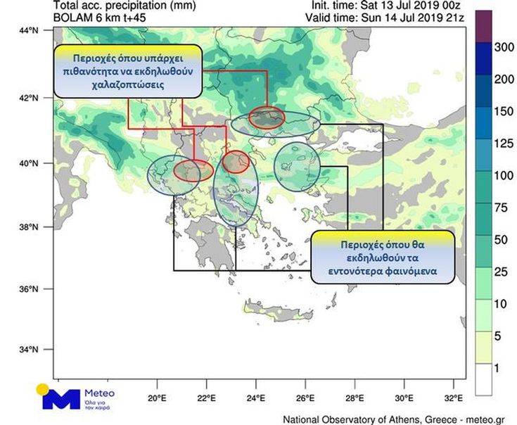 Σύμφωνα με την πρόβλεψη για τον καιρό των επόμενων ωρών από την υπηρεσία meteo του Εθνικού Αστεροσκοπείου Αθηνών, τοπικές βροχές και σποραδικές καταιγίδες στα ανατολικά και κυρίως στα βόρεια ηπειρωτικά, περιμένουμε το Σάββατο 13 Ιουλίου 2019, ενώ από το απόγευμα λίγες βροχές θα εκδηλωθούν στα δυτικά και νότια.