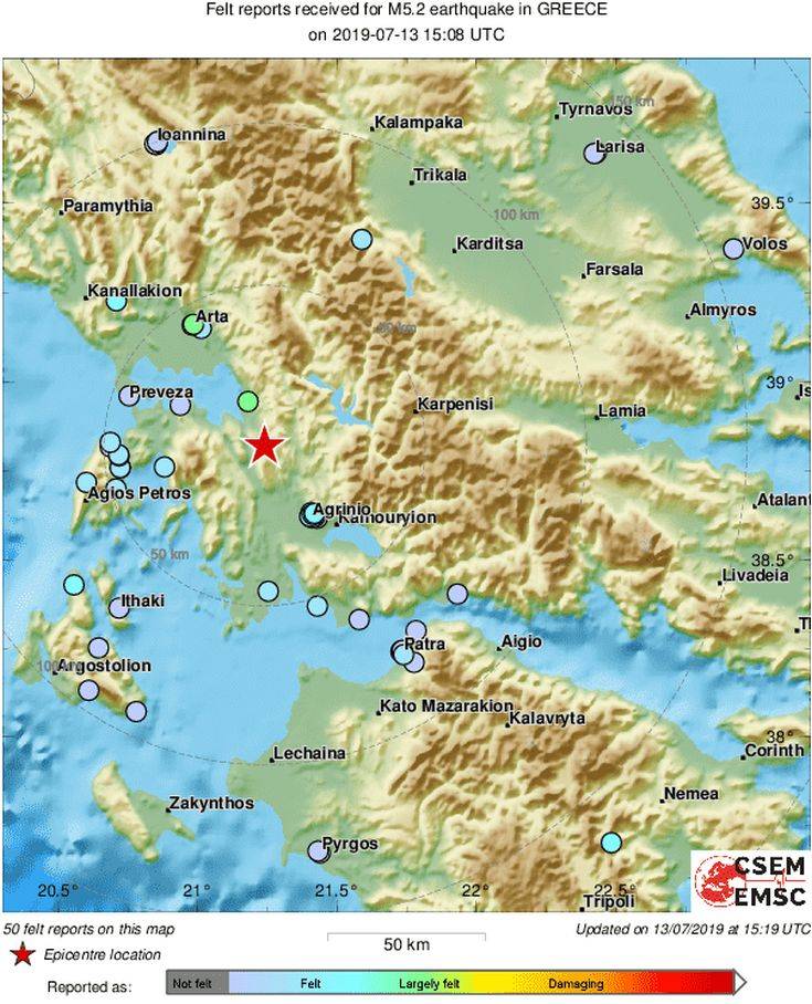 Το Ευρωμεσογειακό Ινστιτούτο κάνει λόγο για σεισμό μεγέθους 5,2 βαθμών της κλίμακας Ρίχτερ.