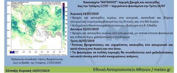 Όπως αναφέρει το meteo.gr ο «Αντίνοος», στη διαφάνεια που ακολουθεί θα επηρεάσει με ισχυρές βροχές και καταιγίδες αρκετές περιοχές της χώρας. Τα καιρικά φαινόμενα θα συνοδεύονται κατά τόπους από χαλαζοπτώσεις και πολύ ενισχυμένους ανέμους.