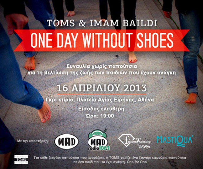 Η TOMS σας προσκαλεί σε μία συναυλία χωρίς παπούτσια με τους Imam Baildi. Μία πρωτοβουλία της TOMS για τη βελτίωση της ζωής των παιδιών που έχουν ανάγκη.