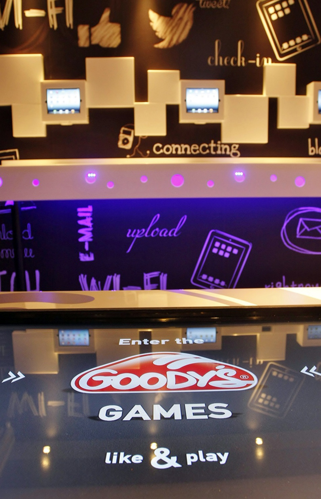 To MY BURGER, MY GOODY’S είναι διαθέσιμο σε Goody’s σε ολόκληρη την Ελλάδα. Παράλληλα στα ολοκαίνουργια εστιατόρια της αλυσίδας: στην Κηφισιά, στην Γλυφάδα, στο Παγκράτι, στη Νέα Κηφισιά και σύντομα σε ακόμα περισσότερα μπορείς να ανακαλύψεις τη νέα εποχή Goody’s: να διασκεδάζεις στη μεγάλη multi touch οθόνη τελευταίας τεχνολογίας δεκάδες διαδραστικά παιχνίδια, να σερφάρεις μέσω iPads. Τέλος σε όλα τα Goody’s έχεις internet access εντελώς δωρεάν και εντελώς απεριόριστα, με την βοήθεια του free wifi! Έτσι, μπορείς να είσαι πάντα συνδεδεμένος με την παρέα σου.