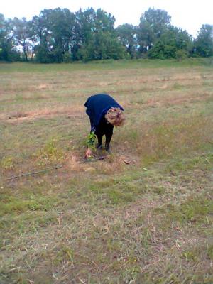 «Βουτάει» στο χωράφι με το ταγέρ, δίχως να δυσκολεύεται στις κινήσεις της.
