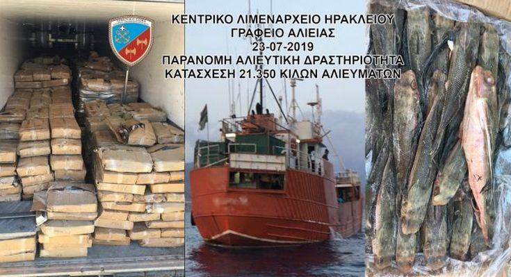 Στον εντοπισμό και την κατάσχεση είκοσι ενός τόνων και τριακοσίων πενήντα κιλών (21.350,0 kg) συνολικά αλιευμάτων προέβησαν στελέχη του Γραφείου Αλιείας του Κεντρικού Λιμεναρχείου Ηρακλείου.