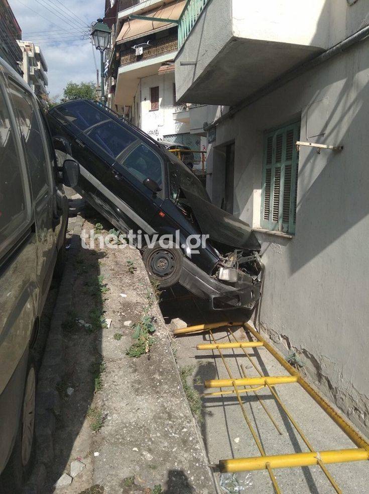 Ένα αυτοκίνητο που κινούνταν στην περιοχή της Άνω Πόλης στη Θεσσαλονίκη, εξετράπη της πορείας του και κατέληξε στον τοίχο οικίας.