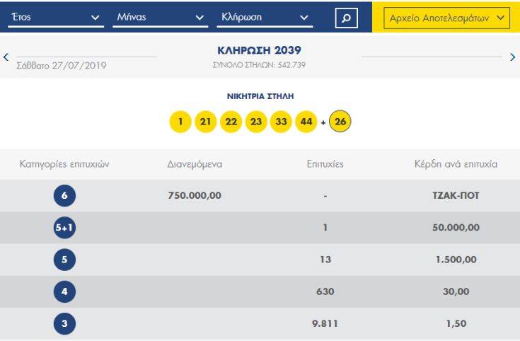 Οι τυχεροί αριθμοί του ΛΟΤΤΟ είναι: 1, 21, 22, 23, 33, 44 Bonus: 26