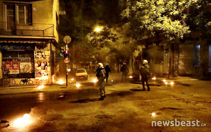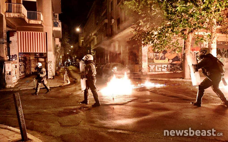 Ομάδα περίπου 30 ατόμων επιτέθηκε με βόμβες μολότοφ σε διμοιρία των ΜΑΤ στην οδό Χαριλάου Τρικούπη στα Εξάρχεια πριν από λίγη ώρα.