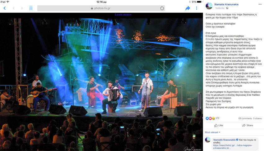 Μετά τον σάλο που προκλήθηκε από το επεισόδιο σε συναυλία στην Ύδρα, κατά το οποίο ο Σταμάτης Κραουνάκης επιτέθηκε λεκτικά σε μητέρα η οποία έσπρωχνε τα παιδιά της, ο μουσικοσυνθέτης απάντησε με ανάρτησή του στο Facebook.