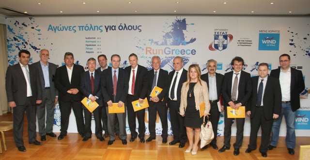 Το νέο Πρόγραμμα Αγώνων Δρόμου «Run Greece», που διοργανώνει ο ΣΕΓΑΣ σε πέντε πόλεις της Ελλάδας σε συνεργασία με την τοπική και περιφερειακή αυτοδιοίκηση και τη χορηγική υποστήριξη της WIND Ελλάς, παρουσιάστηκε σήμερα.