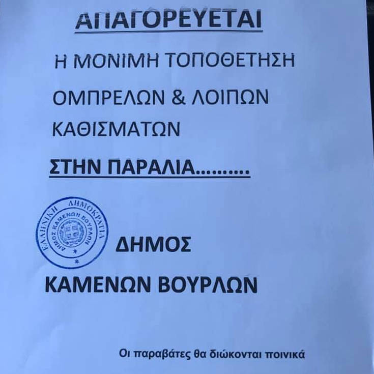 Ανάρτησε επίσης και τη σχετική απαγόρευση την οποία οφείλουν όλοι οι πολίτες να σεβαστούν, καθώς η μόνιμη τοποθέτηση κάποιων πραγμάτων στην παραλία, συνιστά ποινικό αδίκημα.