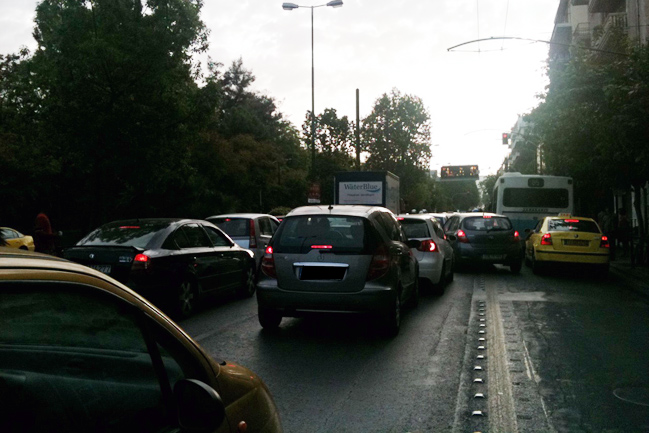 Ακινητοποιημένα τα οχήματα στην άνοδο της λεωφόρου, με τις ουρές των αυτοκινήτων να ξεκινούν από το Πεδίο του Άρεως.