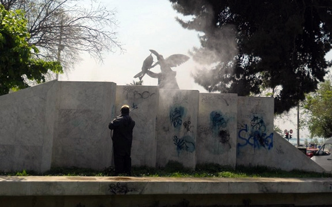 Πρόσκληση προς όλους τους πολίτες της Θεσσαλονίκης να συμμετάσχουν στη δράση απομάκρυνσης των γκράφιτι από μνημεία, δημόσια γλυπτά και χώρους πολιτιστικού και ιστορικού ενδιαφέροντος της πόλης απευθύνουν η Πολιτιστική Εταιρεία Επιχειρηματιών Βορείου Ελλάδος και ο δήμος Θεσσαλονίκης.