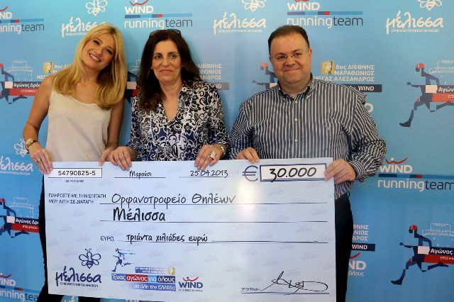 Με μια λιτή, αλλά πλημμυρισμένη με δεκάδες παιδικά χαμόγελα, εκδήλωση στις εγκαταστάσεις του Ορφανοτροφείου Θηλέων Μέλισσα στο Πανόραμα Θεσσαλονίκης, η WIND παρέδωσε την επιταγή με το ποσό των 30.000 ευρώ που συγκεντρώθηκαν από την εκστρατεία αλληλεγγύης που πραγματοποίησε μέσω της WIND Running Team, με αφορμή την παρουσία της εταιρείας ως χορηγός στον 8ο Διεθνή Μαραθώνιο Μέγας Αλέξανδρος, στη Θεσσαλονίκη την Κυριακή 21 Απριλίου.