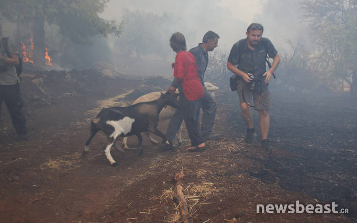 Ο συναγερμός των επίγειων και των εναέριων μέσων ήταν άμεσος και όπως φαίνεται και στις φωτογραφίες του newsbeast.gr οι προσπάθειες των πυροσβεστών να σώσουν ζώα από ένα ποιμνιοστάσιο που απειλούταν είναι αγωνιώδεις.