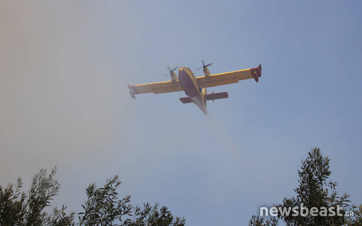 Η αντίδραση της πυροσβεστικής ήταν άμεση με αεροσκάφη να πραγματοποιούν ρίψεις νερού για να περιορίσουν τη φωτιά και να μην απειληθούν περιουσίες.