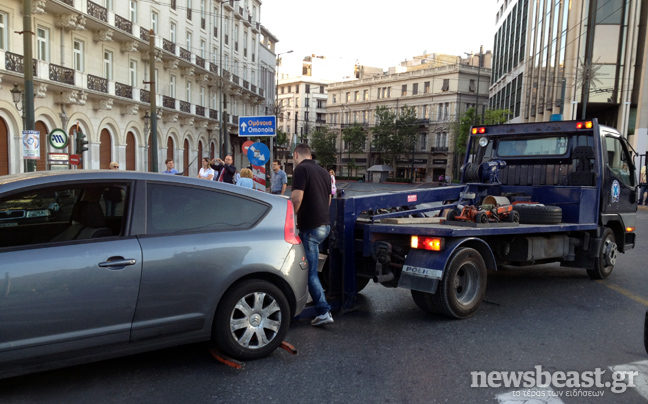 Μπροστά στην πλατεία Συντάγματος πήγε να παρκάρει ο βουλευτής της Χρυσής Αυγής Ηλίας Κασιδιάρης, την ώρα που επικρατούσε ένταση με τα ΜΑΤ, με αποτέλεσμα οι αστυνομικοί να του κόψουν κλήση και παραλίγο ο γερανός να του πάρει το αυτοκίνητο.