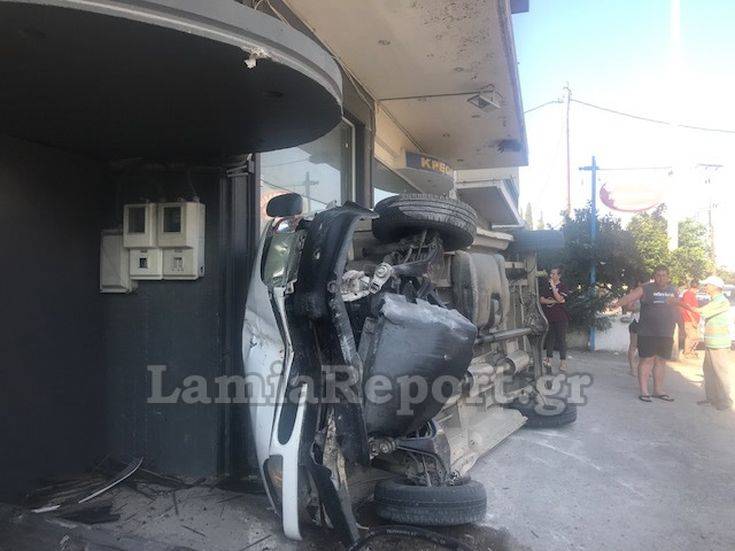 Το βανάκι στην κυριολεξία «πάρκαρε» με το πλάι έξω από την πόρτα επιχείρησης – που δεν λειτουργεί – με τον οδηγό του να στέκεται τυχερός και να μην τραυματίζεται σοβαρά, σύμφωνα με τις πρώτες πληροφορίες.