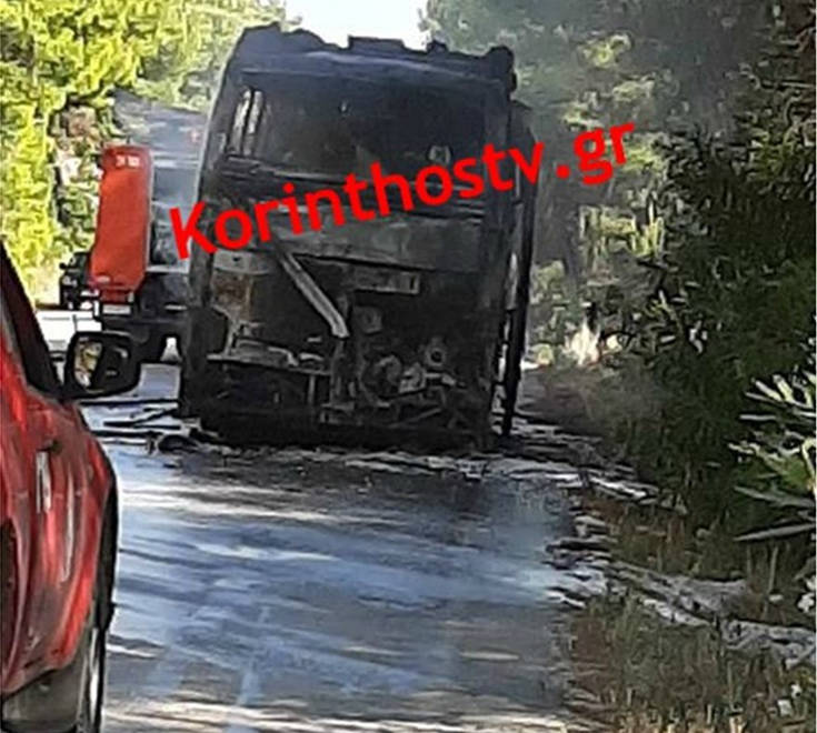 Το λεωφορείο κάηκε σχεδόν ολοσχερώς.