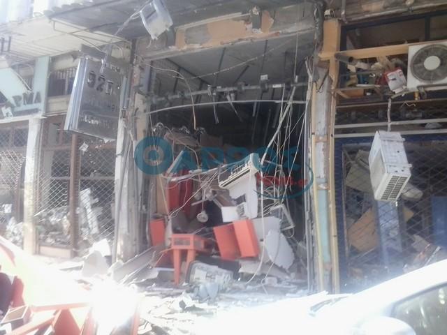 Όπως αναφέρει το tharrosnews.gr, έχει καταστραφεί ολοσχερώς ένα κατάστημα και ένα αυτοκίνητο, ενώ έχουν σπάσει τα τζάμια σε αρκετά καταστήματα.
